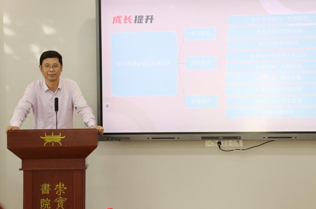此次专业思想教育座谈会从专业发展概况、课程设置、专业发展前景、个人成长提升四个方面展开。曹渝重点介绍了金融工程专业的师资力量、专业特色和专业优势、课程设置情况;黄文才对专业发展前景做出详细梳理,为学生在技能考证、考研就业以及提升综合素质方面提供多种建议;杜辉副院长就如何高质量度过大学四年与学生们进行深入交流,他鼓励学生从学习、人际交往、自我提升三个方面着手,做好大学四年规划、不虚度光阴,努力提高硬实力和软实力,为更好地实现个人价值拼搏奋斗。