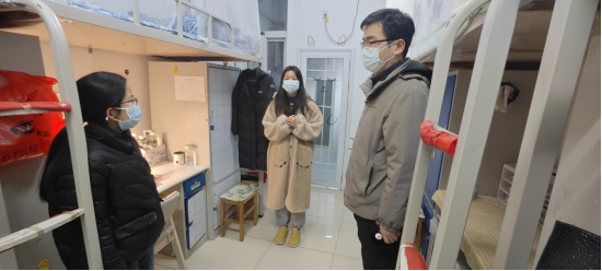 俞彤晖一行人先后来到26、27栋宿舍楼及经管楼308研究生自习室等场所,详细询问留校研究生学术科研、饮食起居等情况,要求同学们提升安全防护意识。随后他们还对各场所消防安全、用电安全进行认真检查。俞彤晖特别提醒宿舍用电安全,要求确保没有违规使用大功率电器等不安全行为,鼓励同学们合理规划假期生活。
