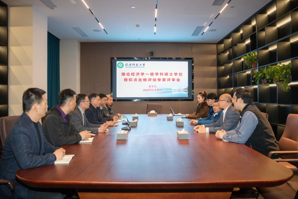 本次学位授权点评估专家组由暨南大学覃成林教授、上海交通大学吕守军教授、河南大学李恒教授、河南大学高保中教授和河南科技大学张纪教授组成。首先,彭荣胜院长根据《理论经济学一级学科硕士学位授权点自我评估总结报告》,从培养目标与学位标准、学位授权点基本条件、人才培养、服务贡献等方面,汇报了本学位授权点近五年来的发展思路、主要做法和取得的成绩。专家组认真审阅了总结报告和相关支撑资料,并与部分师生进行了座谈。经逐项检查分析,专家组对理论经济学一级学科硕士学位授权点建设所做的努力和取得的成绩给予了充分肯定,并从优化课程设置、强化师资队伍建设、提升科研支撑力度等方面提出了宝贵意见和建议。最后,彭荣胜院长对莅会专家的支持与帮助致以诚挚的谢意,并表示将全面落实专家组意见,加强学位点建设和人才培养质量。