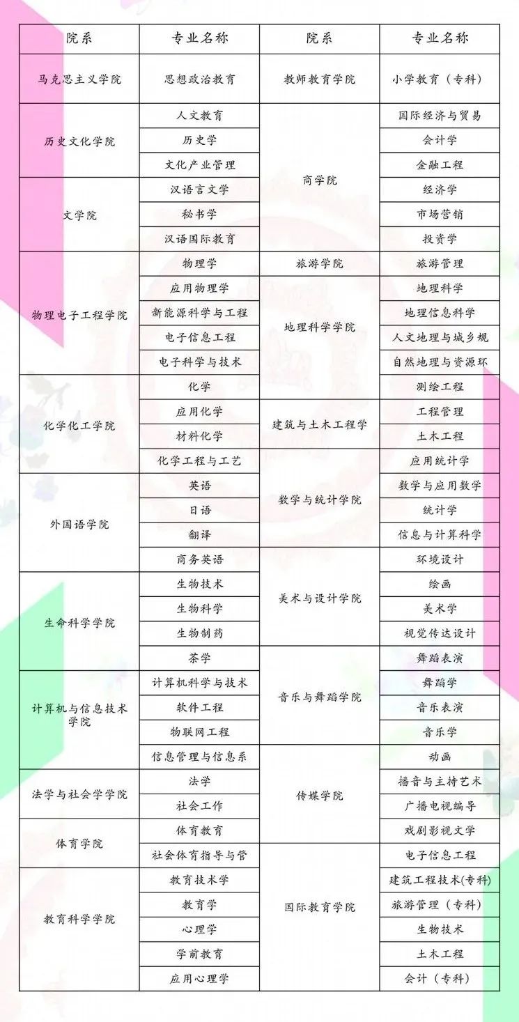 信阳师范学院2021届毕业生专业信息一览表