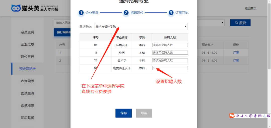 展位情况:双选月期间网络会场开设展位300个,供中各招聘企业、学校、教育机构参会使用。
