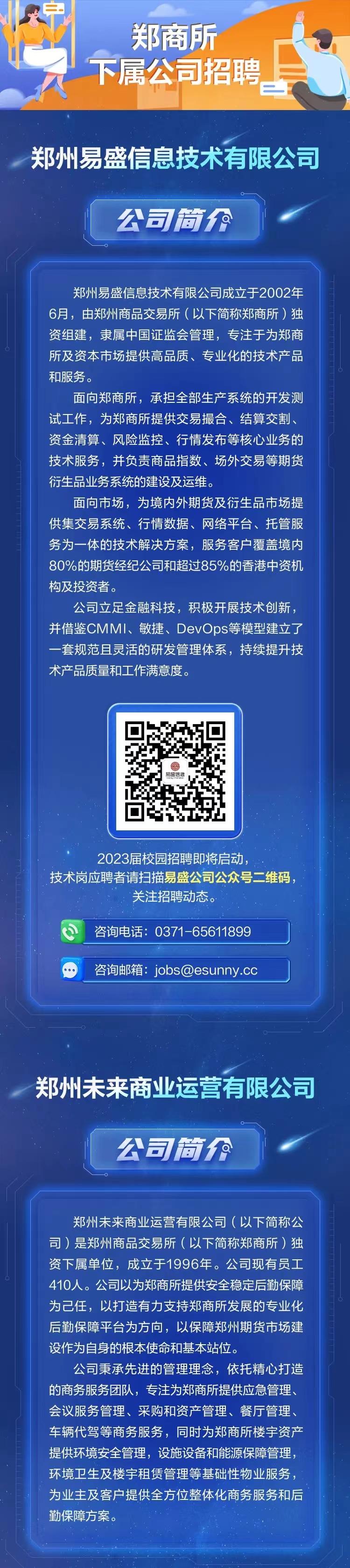 国企!郑州商品交易所及下属公司2022年度秋季招聘