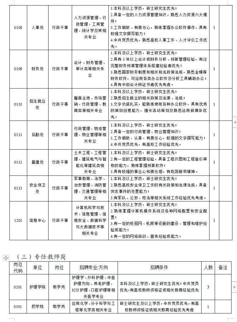 二、招聘岗位及要求