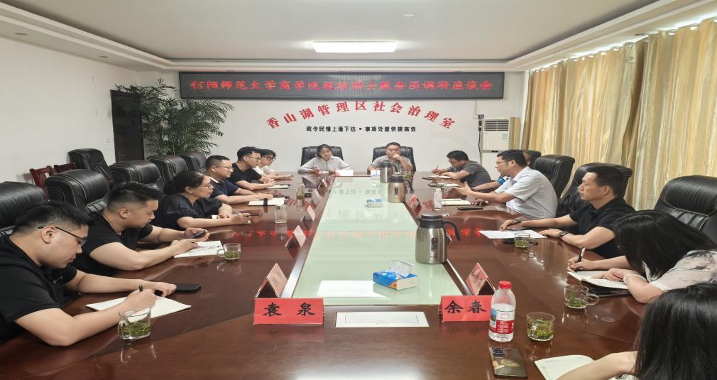 在香山湖管理区座谈会上,管理区主任詹晓光详细介绍了区情概况以及蜂蜜、茶叶、康养、民宿、研习五大支柱产业的发展现状,并分享了农村产业融合发展的实践经验。服务团成员汇报了当前流域生态治理、县域经济绿色发展等方面的前沿学术成果,双方就特色农业培育、农业产业链条延伸、数字乡村建设等议题深入交换了意见。