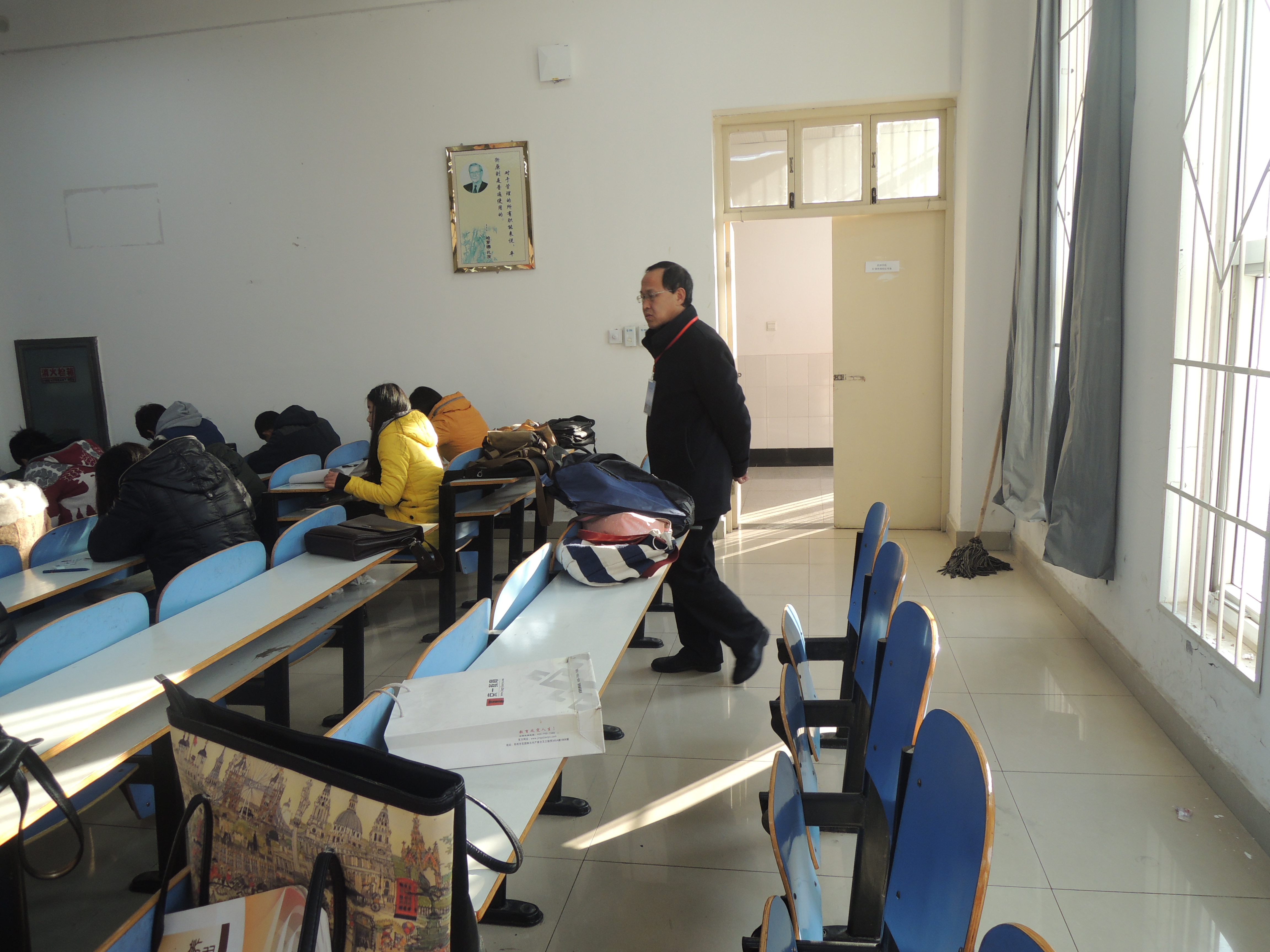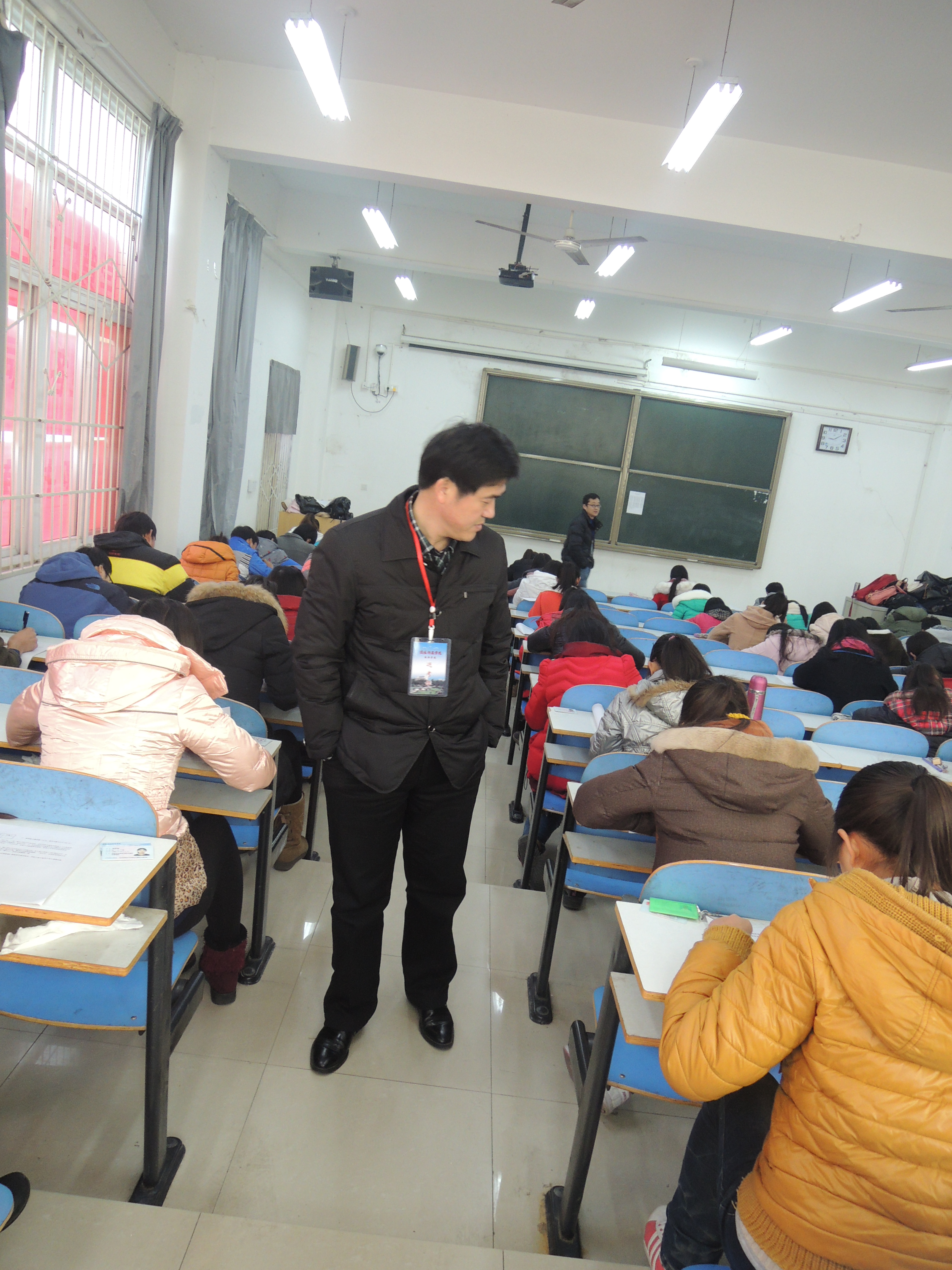 12月31日,是我院2013-2014学年第一学期期末考试的第一天。上午9时10分,学院党总支书记盛正国教授、副院长梅士建教授和贾义保卫副教授深入考场检查指导期末考试工作。