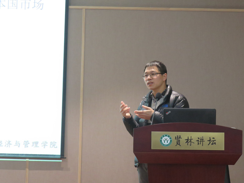 报告会中,赵奇伟教授基于国际商务与企业管理视角,重点从企业的出口行为是否会提高其退出本国市场的可能性出发,阐述了在具有规模经济优势的竞争对手情况下,出口企业国内市场份额被挤占的概率及应对之策。同时,针对当前国际经济与贸易领域研究切入点的判断,赵教授也提出其个人观点。