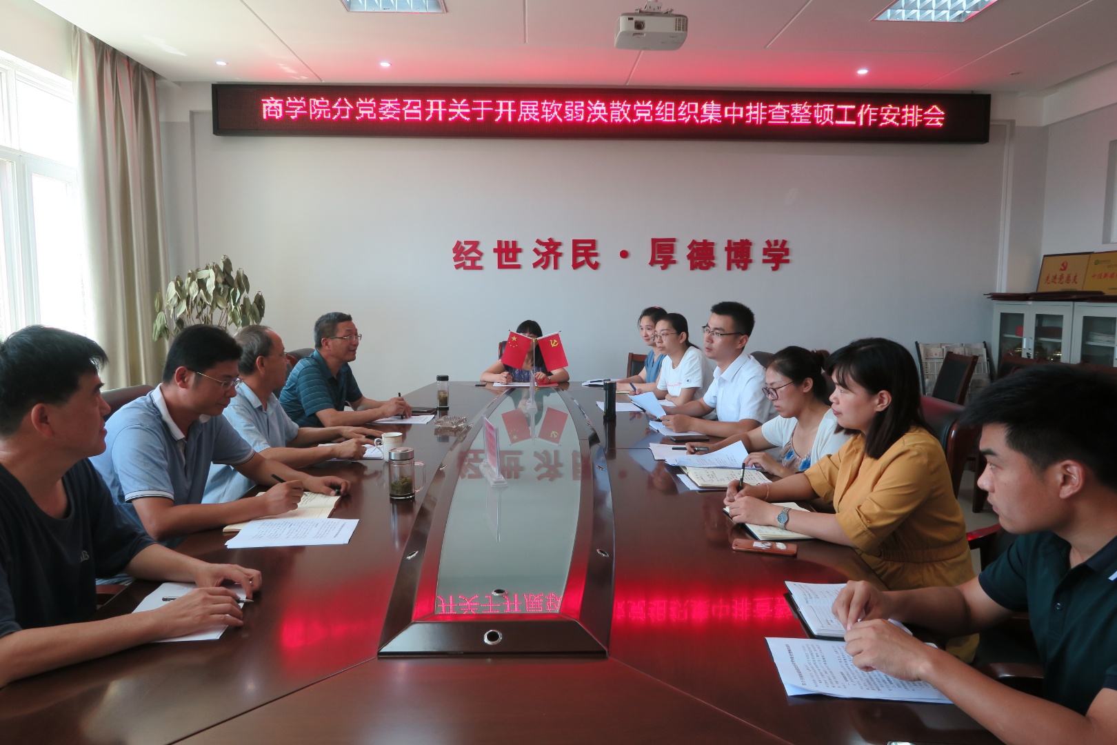 8月16日上午,William威廉英国分党委在经管楼506会议室召开软弱涣散党组织集中排查整顿工作安排会,William威廉英国分党委书记盛正国,党委委员梅士建、李毓、杜辉及各党支部书记出席会议,会议由盛正国主持。