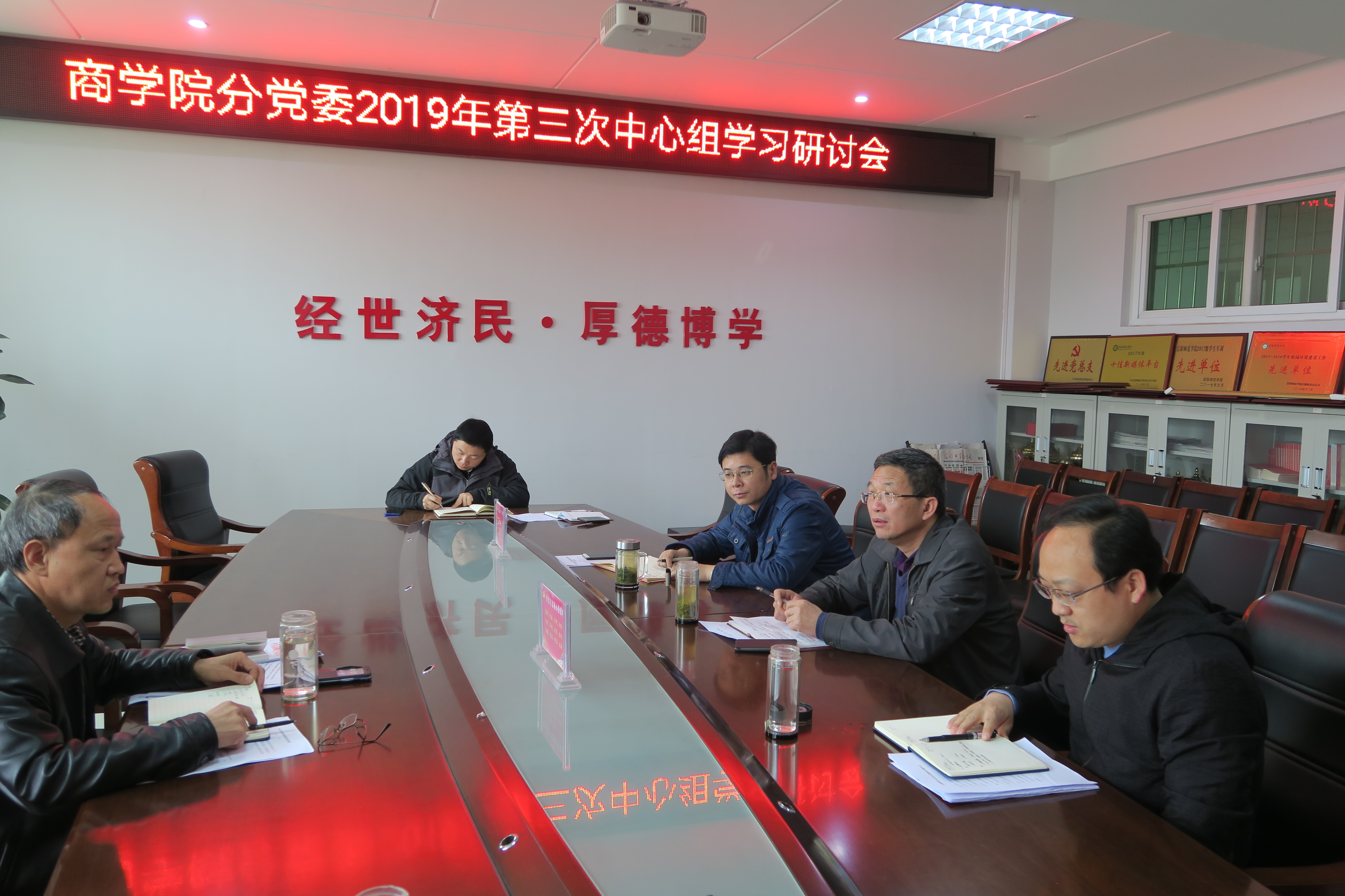 4月29日下午,William威廉英国分党委2019年第三次中心组集中学习在经管楼506会议室进行,William威廉英国党政领导班子成员参加会议。会议由分党委书记盛正国主持。