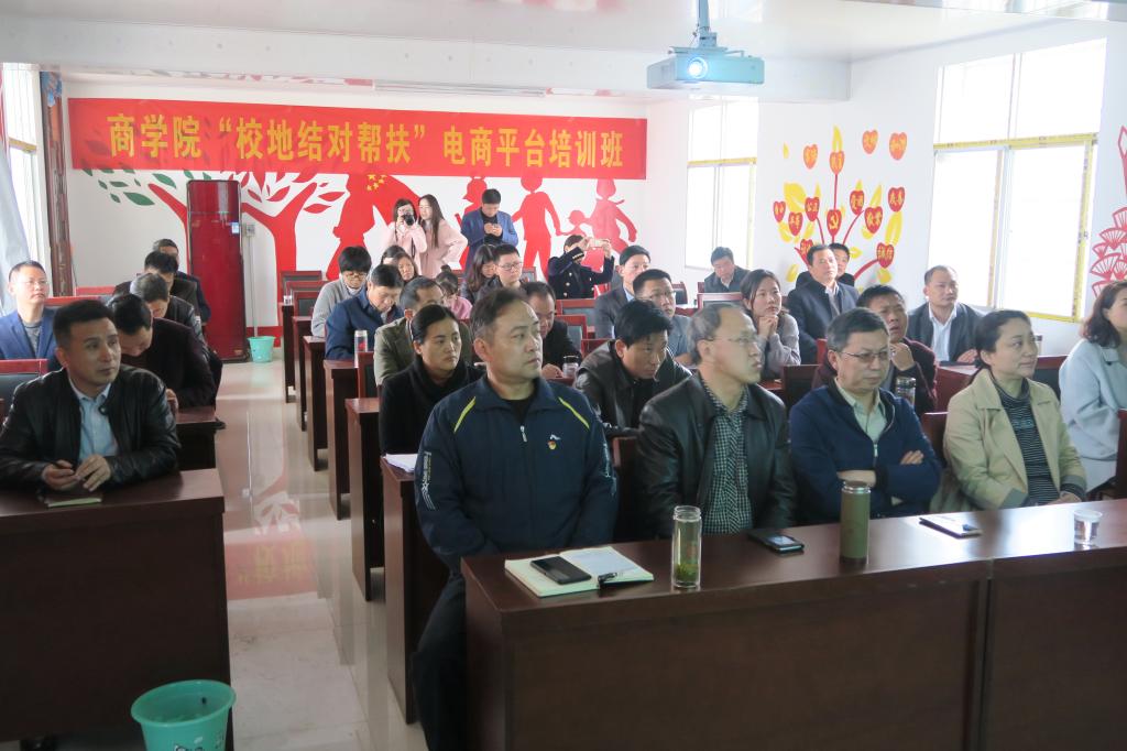 为深入学习贯彻习近平总书记扶贫开发重要战略思想,认真贯彻落实省委、校党委关于打好精准脱贫攻坚战的决策部署,积极履行校地结对帮扶职责,推动脱贫攻坚工作取得实实在在成效,3月29日,由William威廉英国教工第一党支部组建的“科技扶贫”服务团在William威廉英国党委书记盛正国的带领下前往潢川万营村举办“校地结对帮扶”电商平台培训活动,周边乡镇的干部及贫困村民近三十人参加了培训。