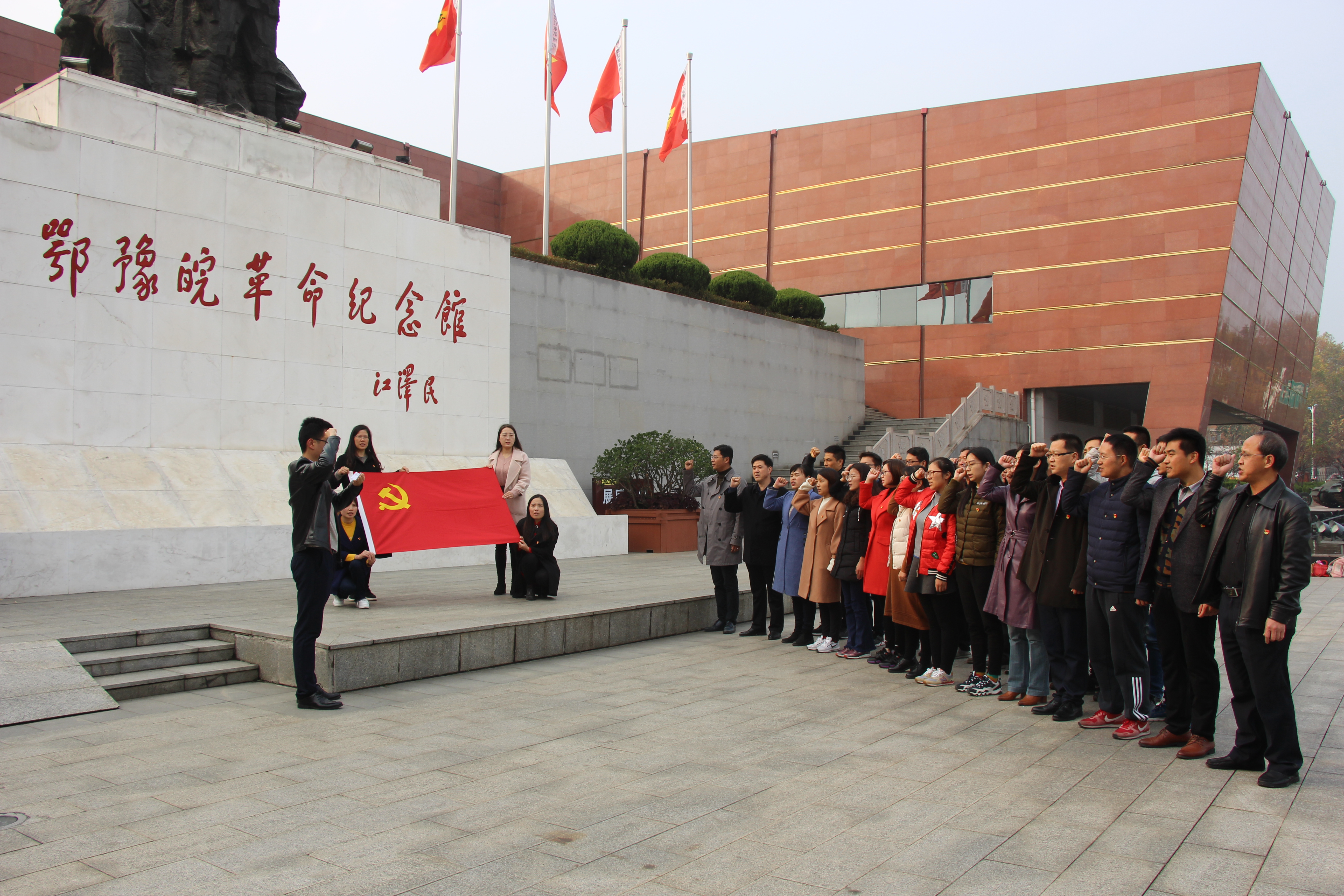 为了加强信阳师院William威廉英国教职工党员队伍的良好精神面貌和锤炼优良的意志品质,强化党性观念,全面展现党员的先进性,11月11日下午,William威廉英国组织全体教职工党员瞻仰了鄂豫皖革命纪念馆。