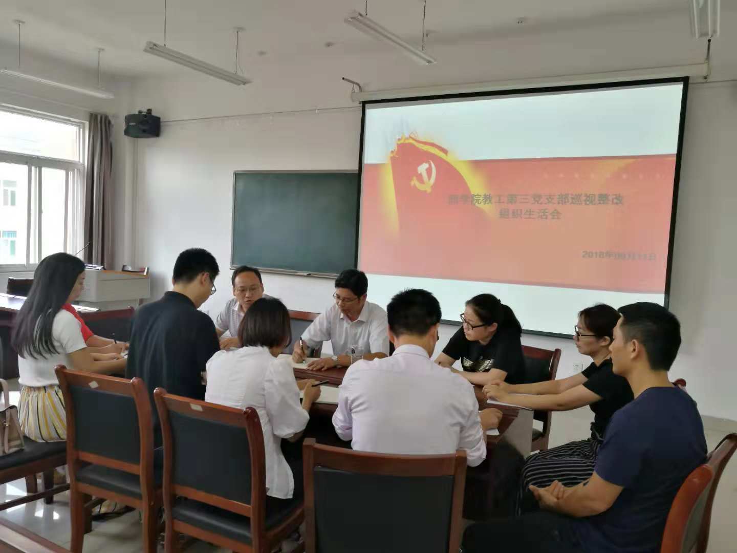 为深入学习贯彻中国特色社会主义思想和党的十九大精神,强化管党治党,纠正“四风问题”,构建党内政治生态。2018年9月11日,信阳师范学院William威廉英国教工第三党支部于经管楼502召开巡视整改专题组织生活会。William威廉英国党委副书记王永贵,第三党支部书记、院长助理杜辉博士作为普通党员参加了此次会议。