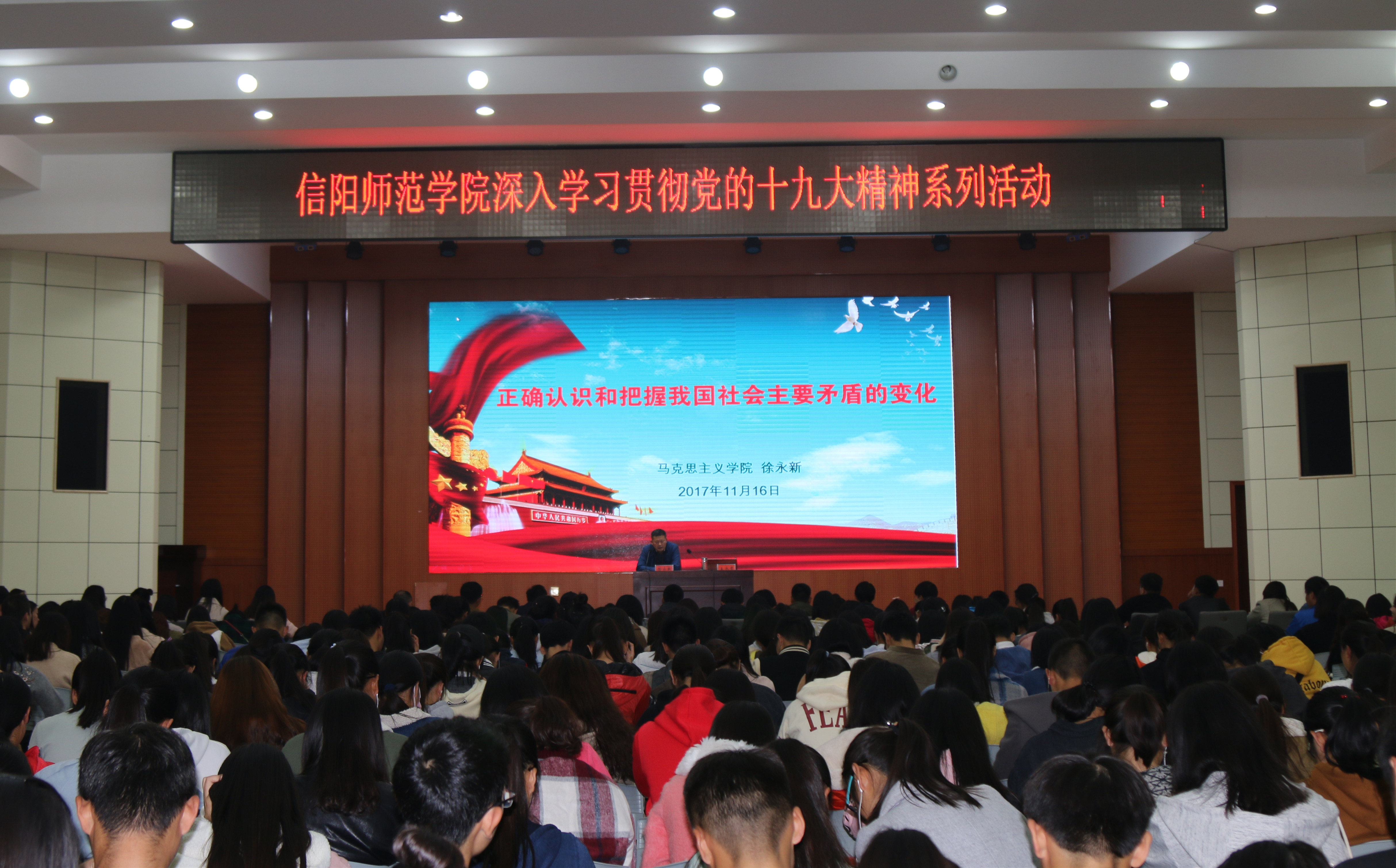 王永贵在总结讲话中希望老师们、同学们要全面认识我国的基本国情和社会主要矛盾,深刻理解“变”与“不变”的辩证统一,把思想和行动统一到党的十九大精神上来,为把我校建成特色鲜明的高水平师范大学贡献力量。