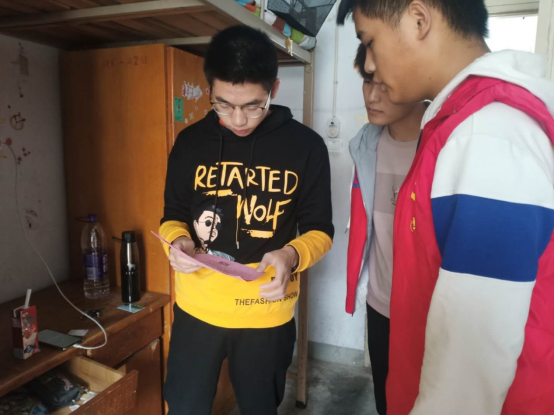 在新生宿舍,党员志愿服务者在老师的带领下,分成小组,进入其宿舍进行更加深入、全面、详细的了解,为新生宣传党的方针政策,引导新生向党组织靠拢;并普及疫情防控知识、寝室安全用电等,为他们答疑解惑。呈现出创先争优、夯实奋进、带头示范的生动景象。