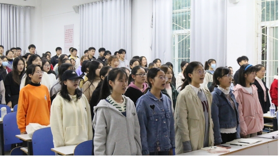 典礼在嘹亮的国歌声中拉开了序幕。韩月华、李梦分别就此次入党积极分子培训班和新生团校做了详细安排。紧接着,卢家茹、张园鹦、王梦怡分别作为党员代表、入党积极分子代表和新生代表发言。