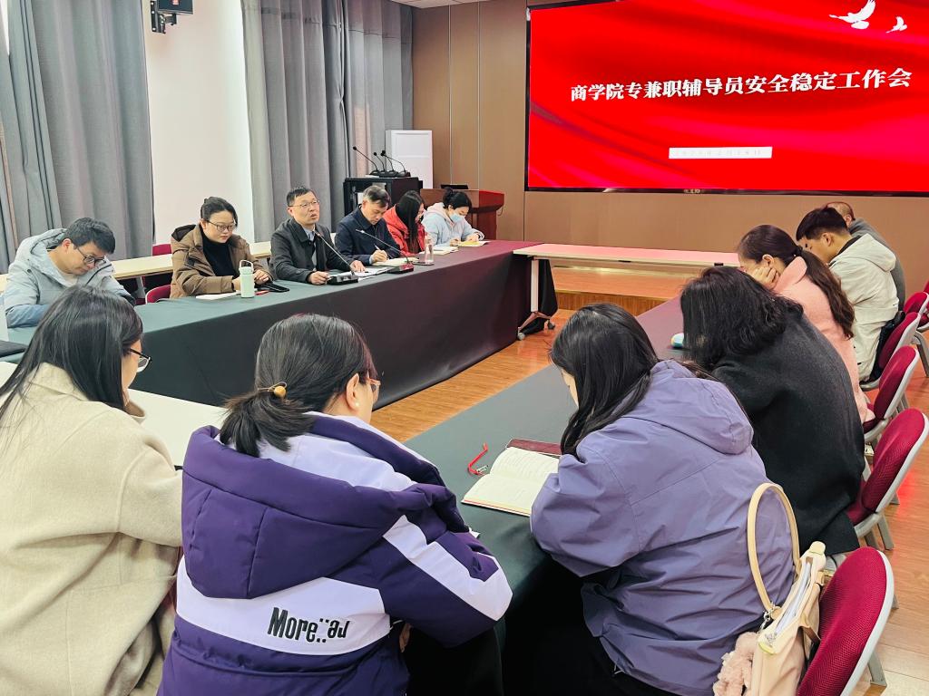 会议伊始,李辉首先传达了学校安全稳定工作会议精神,并强调全体辅导员要高度重视安全工作,加强责任心和使命感,扎实做好新学期各项工作。同时,李辉结合辅导员工作职责,对新学期安全稳定工作具体提出明确要求。首先,要以学生骨干为抓手,加强学生安全教育,提高学生安全意识。其次,要以制度建设为依托,进一步完善学生安全管理制度,为学院安全稳定工作提供有力保障。最后,要做实做细学生工作,深入学生,给予必要帮助和支持。彭荣胜在总结讲话中指出,全体辅导员要认真贯彻落实会议精神,以更加饱满的热情、更加扎实的学风,做好新学期安全稳定工作,为学院高质量发展保驾护航。