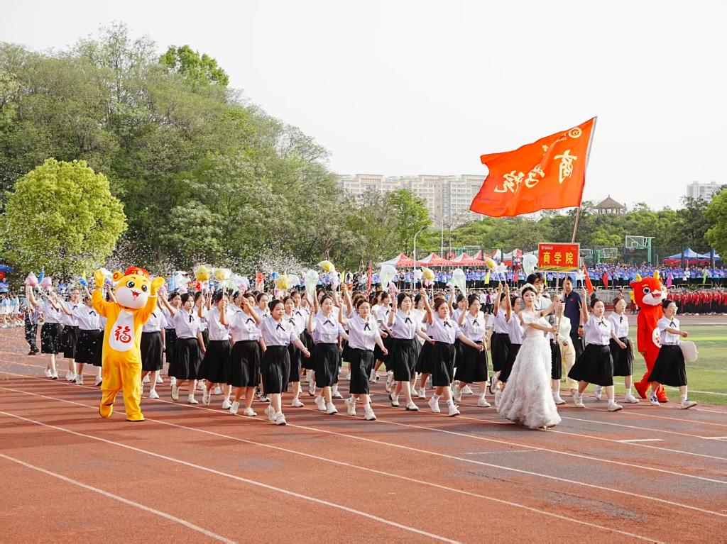 上午8时,副校长王娟宣布运动会正式开幕。在庄严的运动员进行曲中,各学院方阵依次入场。我院方阵学子身着统一服装,步伐矫健,口号嘹亮,以自信的姿态接受全校师生的检阅。在特色方阵表演环节,我院学子将舞蹈表演与实时直播技术相融合,通过动态队形变换演绎时代发展主题,赢得现场师生热烈掌声。接着,庄严的升旗仪式举行,全体师生肃立致敬。运动员代表和裁判员代表分别宣誓,承诺恪守体育精神,公平竞赛。随后,校党委书记王文鹏宣布运动会正式开幕。
