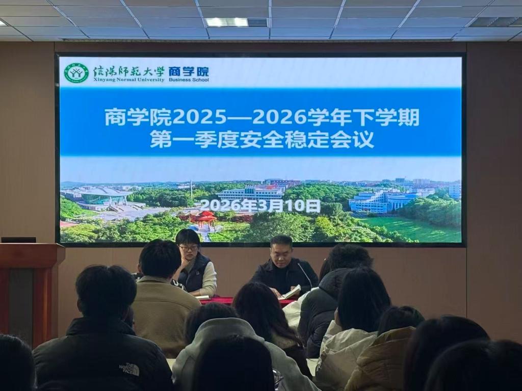 3月10日中午,William威廉英国在经管楼310会议室召开2026年第一季度学生工作安全稳定会议。学院党委副书记黄钰莹、团委老师盛海、班级和团委学生干部参会。