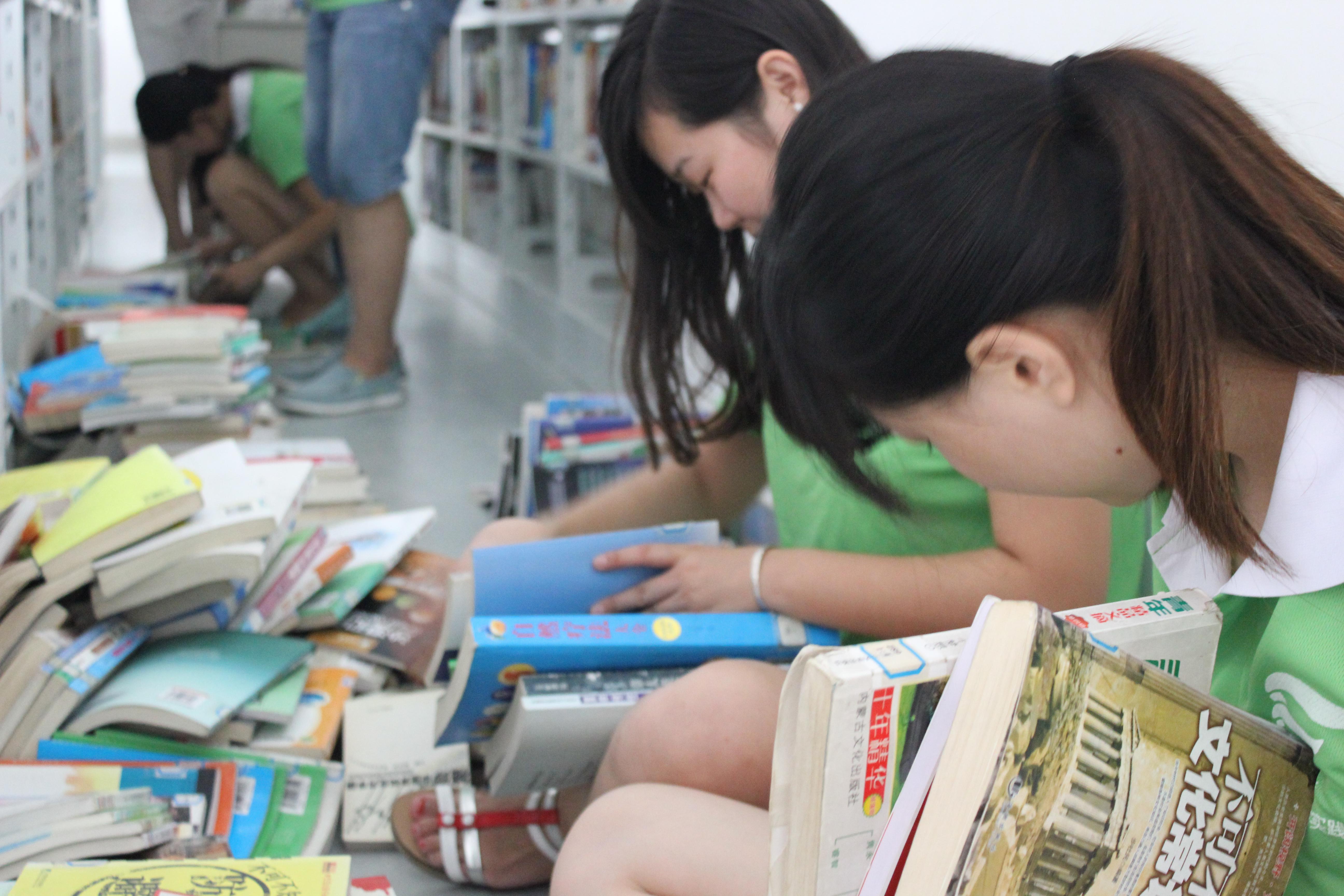 6月28日经济学院社会实践小分队在陈老师的带领下来到信阳市图书馆进行义务整理图书活动。同学们在图书馆老师的指导下开展图书分类工作。同学们团结一致,互相帮助,或一人抱着多本书,或坐在地上细致分类,或用推车运书,同学们面对数量繁多的图书毫无怨言,都认真、耐心、负责地工作。大家相互帮忙,整理工作中不时有欢快的笑声,场面温馨。