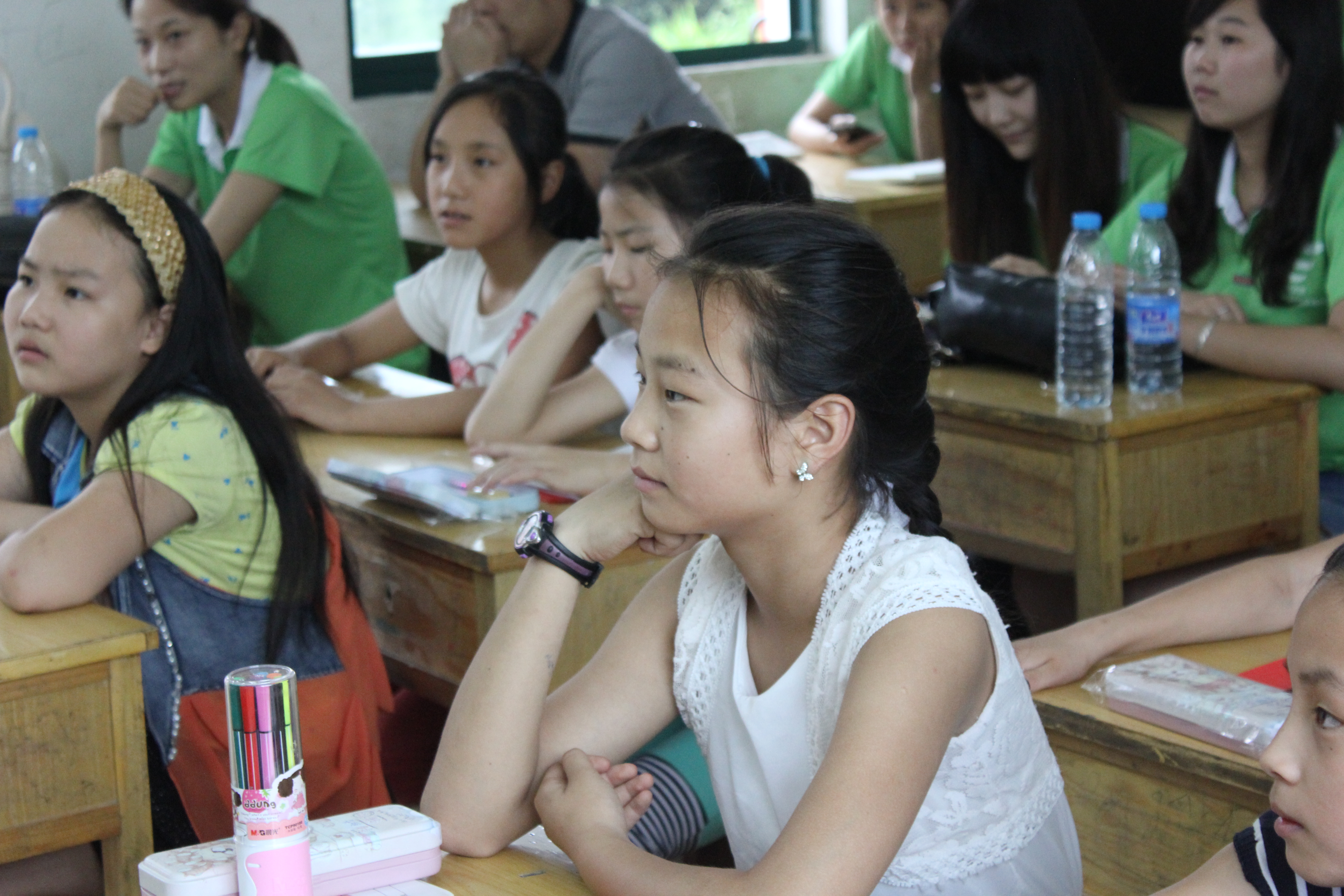 1号下午同学们给潘新中心学校六年级的学生们带来了一节节别开生面的课堂。同学们讲课热情高涨,方法有趣:史丹丹以《送元二使安西》为切入点,详细地向学生们介绍了诗词分析技巧、姚佳琪就单位换算与大家分享了数学学习方法,郝悦通过现场英语写作来与大家共同探讨语法知识。孩子们边听边记,积极发言。讲课同学勉励孩子们要刻苦学习,不忘理想,以优异成绩回报关心自己的人。最后在《同一首歌》、《小星星》的歌声中结束了教学活动。