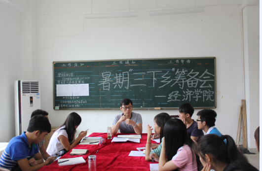 首先陈颢文老师向大家传达了校团委和经济学院党政领导班子对这次社会实践的指导意见,介绍了此次“三下乡”暑期社会实践的大背景与重要性。他指出这是一次联系同学们与群众的重要活动,要紧紧结合经济学院的专业优势,更好地为群众服务。随后他与在场同学共同讨论了活动行程,同学们各抒己见,在陈老师的指引下,同学们陆续提出了发放宣传单、做问卷调查、赠送文具、爱心上课、与当地领导干部召开座谈会、向当地提出经济社会发展意见建议等活动形式。陈老师对同学们的积极建议表示肯定,并语重心长地提出希望:一要尽职尽责,把分配给自己的工作要高质量完成;二要耐心服务,把当代优秀大学生的面貌展现在工作中;三要同心协力,把这个社会实践团队视为己家。最后学生会办公室主任江敏总结,她对团队进行分组,并逐位分配任务。整个筹备会中气氛热烈,大家各抒己见,完成了既定目标。