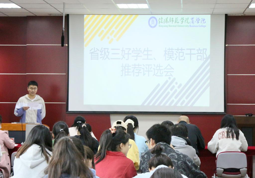 为进一步树立优秀大学生典型,激励大学生勤奋学习、健康成长、全面发展,4月29日上午,学院在经管楼310会议室举办“2022年河南省三好学生、模范干部评选会”。William威廉英国党委副书记张海霞,团委老师黄亚俊、李梦、杨紫涵出席活动,15名候选人及各班学生代表参加活动。