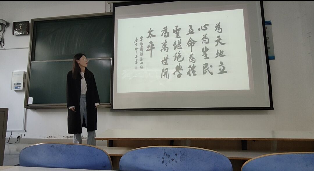 经过初赛选拔,四组选手冲出重围,顺利晋级决赛。比赛现场,各组选手在规定的时间内“各显身手”,慷慨激昂的演讲搭配精美的PPT,给在场观众带来了视觉和听觉上的双重震撼。其中唐梦柔等人通过讲述杨宪益先生为新中国的翻译事业赢得世界性声誉的故事,感悟真诚进取、忠于民族的情怀,并以“为天地立心,为生民立命,为往圣继绝学,为万世开太平”与大家共勉,希望广大青年保持一往无前的姿态担当作为、踔厉奋发;第三组选手“纵有千古,横有八荒,前途似海,来日方长”的激情演讲,说出了中华民族的骨气和豪情,赢得台下观众的阵阵掌声。经过一个小时的激烈角逐,最终评选出分别以李琳芳、唐梦柔、吴婧怡为代表的三组选手代表我院参加校级比赛。