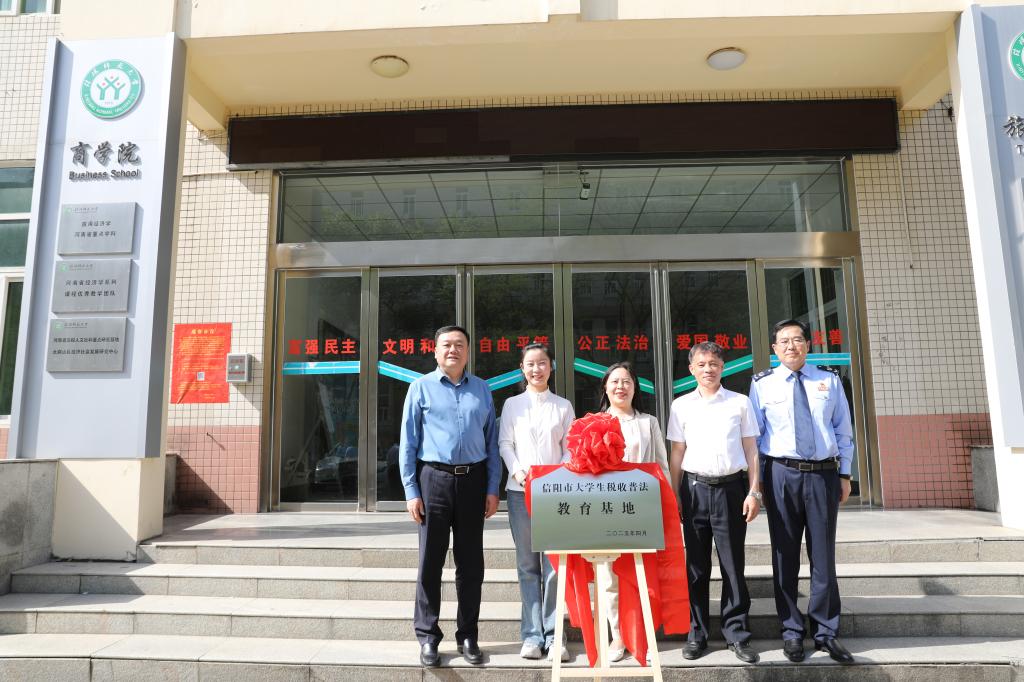 主题活动中,我校与信阳市税务局共同签订框架合作协议,并为“信阳市大学生税收普法教育基地”揭牌。
