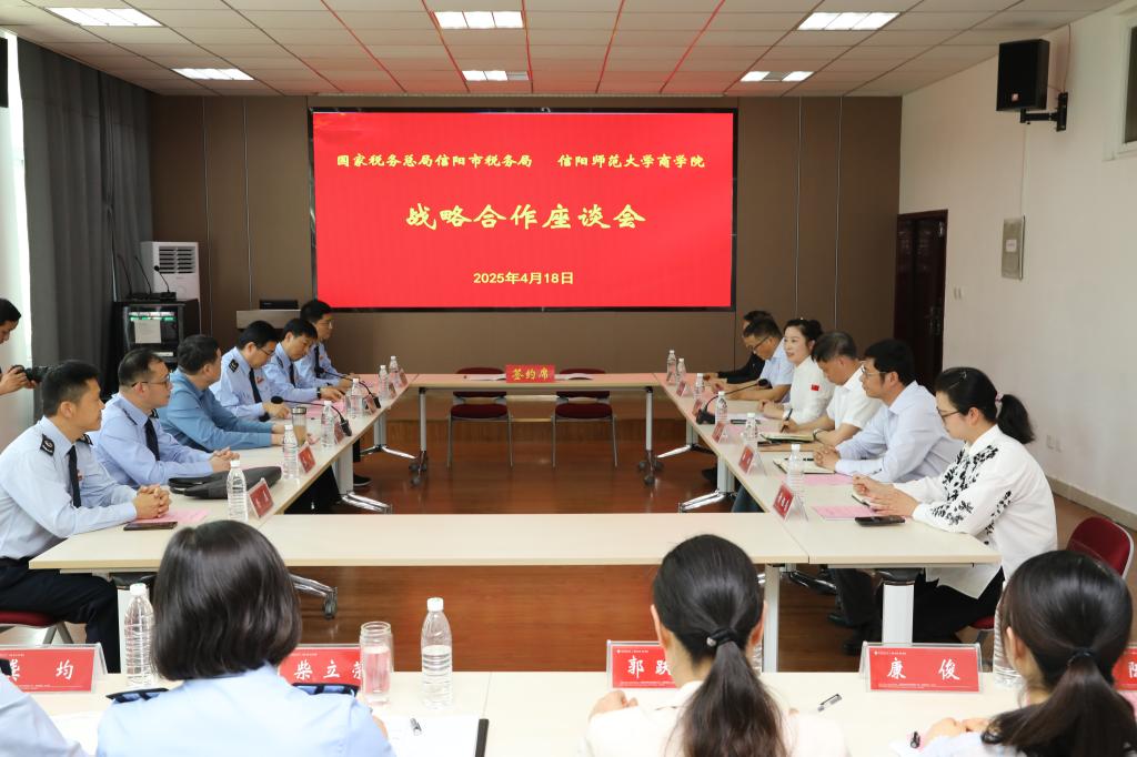 余金霞在致辞中指出,税校合作创新了税收宣传形式,借助青年力量扩大税收宣传影响力,意义重大。希望双方持续拓展合作深度与广度,让税收宣传成为弘扬社会法治精神、推动经济社会发展的重要助力。胡伟介绍了信阳市税务局基本情况,强调税收事业发展对高校人才与科研支持的需求,希望税校双方达成战略合作,共同为中国式现代化信阳税务实践和信阳地方高质量发展作出新的更大贡献。王娟表示,学校将充分发挥学科专业和智库资政优势,与信阳市税务局积极构建好局校共建、人才共育、项目共研、问题共商、成果共享的税校一体化合作模式,打造信阳税校联动的宣传品牌,为信阳经济社会发展贡献更多力量。