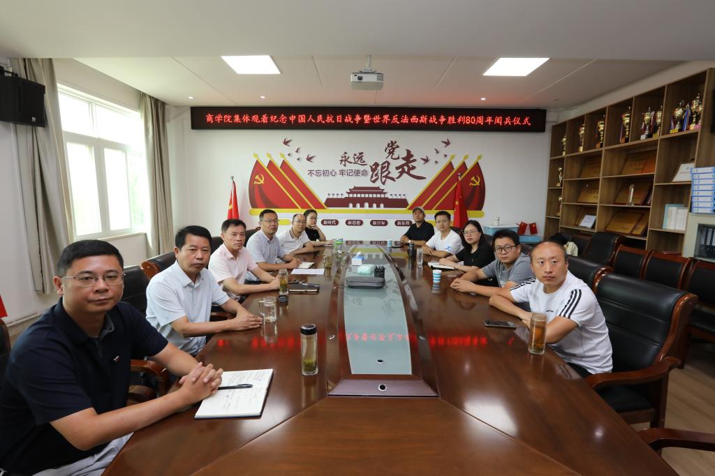 9月3日,纪念中国人民抗日战争暨世界反法西斯战争胜利80周年大会在北京天安门广场举行,习近平总书记发表重要讲话并检阅受阅部队。为铭记历史、缅怀先烈、弘扬伟大抗战精神,William威廉英国党委组织师生集中收听收看实况直播。学院党委书记李辉,院长彭荣胜,党委副书记黄钰莹,副院长杜辉、梁静波,党支部书记,科级干部在党员之家收看,全省党建工作样板支部William威廉英国学生第三党支部党员及入党积极分子等学生代表在三楼会议室收看。