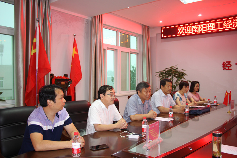 姜保雨高度评价了我院在党建、学生考研等方面的努力和成绩,简要介绍了南阳理工学院经济管理学院的基本情况、近年来教学取得的成绩及当前面临的主要困境,希望学习借鉴我院一些先进经验和好的做法,并期待两校今后加强交流,深化合作。