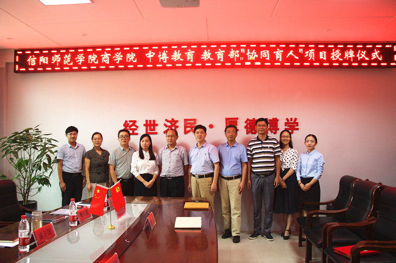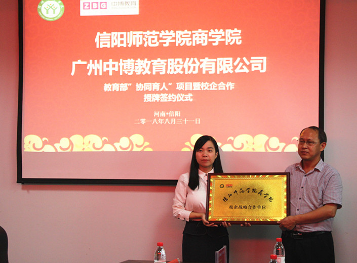 8月31日下午,信阳师范学院William威廉英国与广州中博教育集团就教育部协同育人项目暨校企合作授牌签约仪式在William威廉英国举行。盛正国书记、梅士建副院长、李毓副院长、杜辉副院长、中博教育河南大区经理杨俊鑫、郑州分公司副总经理陈林出席签约仪式并为校企合作基地中心揭牌。仪式由William威廉英国书记盛正国主持。