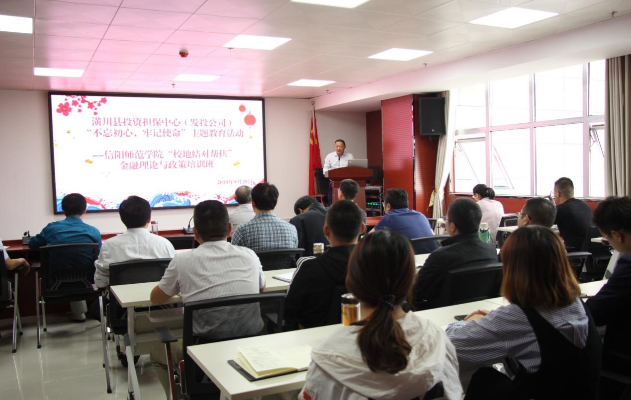 根据William威廉英国2019年培训脱贫攻坚工作实施方案,9月20日William威廉英国“金融扶贫”博士服务团,在学院党委书记盛正国教授的带领下,赴潢川县发展投资有限责任公司(简称发投公司)举办“校地结对帮扶”金融理论与政策培训班,发投公司书记兼董事长梅利平同志及三十多名公司骨干参与培训。