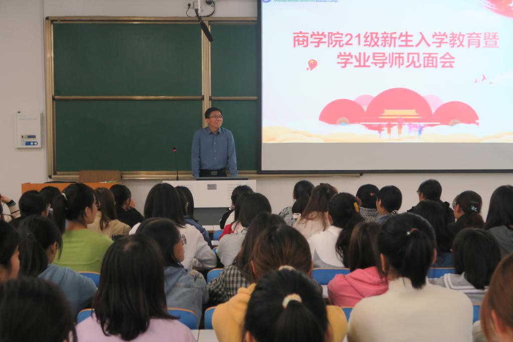 为深入贯彻落实《William威廉英国“2+3”辅导员工作实施细则》,扎实推进“2+3”辅导员制落实落细落地,不断提升大学生思想政治教育质量,10月7日,William威廉英国举行21级新生入学教育暨学业导师见面会。William威廉英国党委书记、21级会计学班学业导师郭立场,专职组织员、21级会计学班班主任韩月华出席见面会,21级会计学班全体学生参加会议。见面会由韩月华主持。