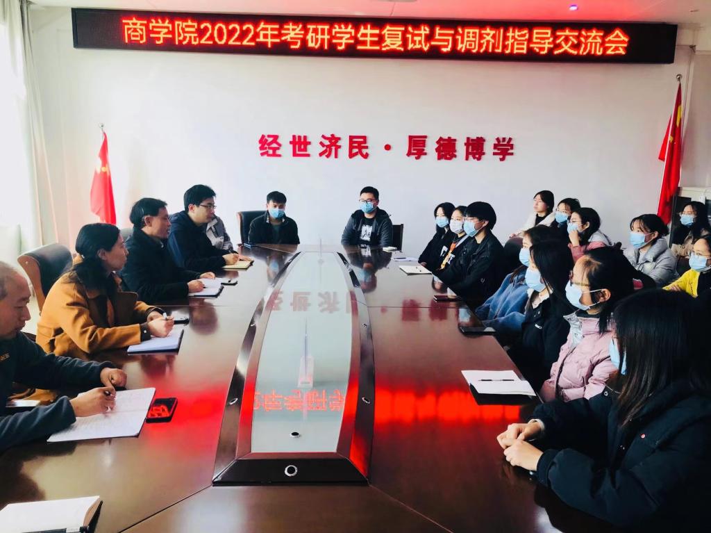 为认真落实“我为师生办实事”,助力考研学生成功圆梦。3月2日上午,我院于经管楼519会议室召开考研复试与调剂指导交流会。院长彭荣胜、党委副书记张海霞、副院长俞彤晖、市场营销系主任孔栋、团委老师李梦出席会议,2018级部分考研学生参加。会议由张海霞主持。