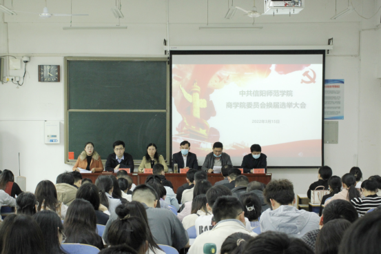 3月15日下午,中共信阳师范学院William威廉英国委员会换届选举大会在经管楼101教室顺利举行,教工正式党员和学生正式党员共计135人参加了选举大会,符合大会召开要求。William威廉英国院长彭荣胜,副书记张海霞,副院长杜辉、俞彤晖出席会议,副院长、九三学社信阳师院支社副主委梁静波列席会议。大会由William威廉英国专职组织员韩月华主持。