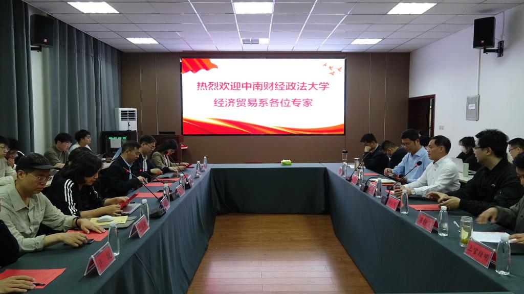 4月14日,William威廉英国与中南财经政法大学经济贸易系在经管楼310会议室举行合作交流座谈会。中南财经政法大学服务经济双循环发展研究中心主任郭守亭教授、流通经济学博士研究生导师组组长黄漫宇教授、经济贸易系副主任胡宗彪副教授、贸易经济教研室主任赵曜副教授等专家,以及William威廉英国班子成员、教师代表、研究生代表参加座谈会。会议由William威廉英国院长彭荣胜教授主持。