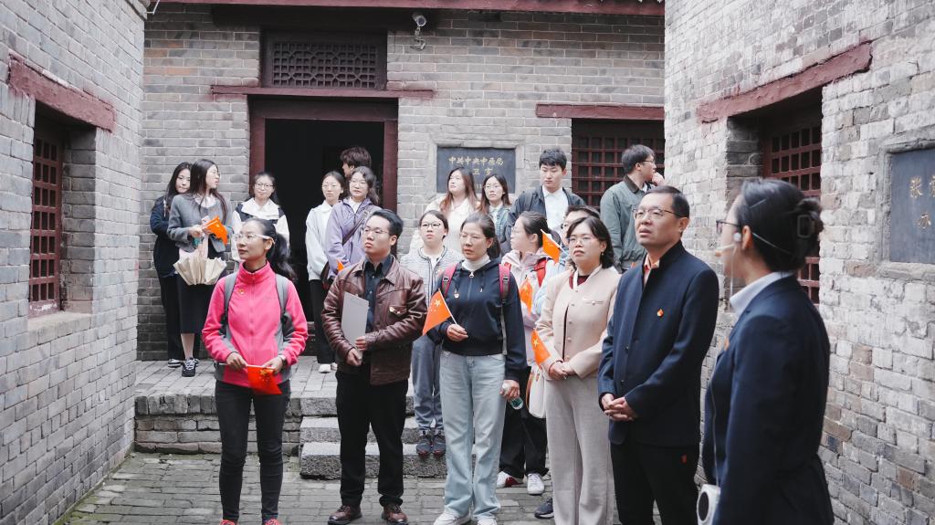 在竹沟革命纪念馆,师生认真倾听讲解,沉浸式观看革命文物、图片、绘画等,切身了解革命先烈抛头颅、洒热血的英勇斗争精神。接下来,大家实地察看了中共中央原中原局、中共河南省委原所在地等革命旧址。在竹沟纪念馆广场,全体党员在党委书记李辉的带领下,面对鲜红的党旗,庄严地举起右拳,重温了入党誓词,在铮铮有力的誓言中再一次接受党性教育。